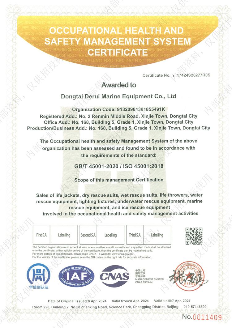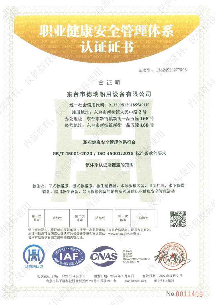 職業(yè)健康安全管理體系認(rèn)證證書(shū)